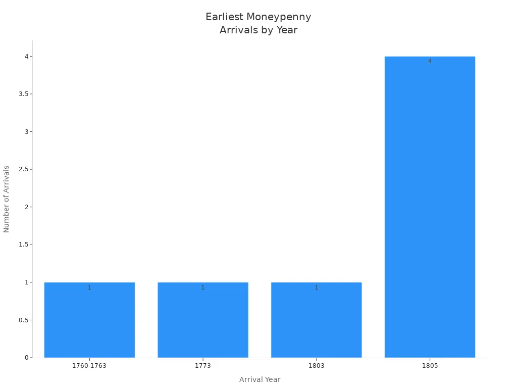 You can follow the moneypenny name across the world. Families first lived in Scotland and England. Later, many moved to other places. Some went to America in the 1700s and 1800s. Others made homes in Canada or Northern Ireland. Old ship lists show moneypenny families arriving in New York and Boston. Every move became part of their family story. Your ancestors may have moved for jobs, land, or adventure. Now, people with the moneypenny name live in many countries.